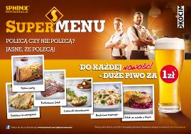 Sphinx, sieć restauracji należąca do Sfinks Polska, 16 kwietnia rozpoczyna telewizyjną kampanię reklamową wokół najnowszej promocji przygotowanej we współpracy z Carlsberg Polska. Jest to druga odsłona akcji „Supermenu w restauracjach Sphinx”, promującej  nową kartę dań. Tym razem do każdej z kulinarnych nowości klienci mogą dokupić duże piwo Okocim za symboliczną złotówkę. Kampanię telewizyjną wspiera komunikacja w restauracjach prowadzona m.in. z wykorzystaniem materiałów BTL takich jak plakaty, roll-upy i podkładki na stoliki. Ponadto, działania promocyjne są realizowane za pomocą oficjalnego profilu sieci na Facebooku, mailingów i działań PR.